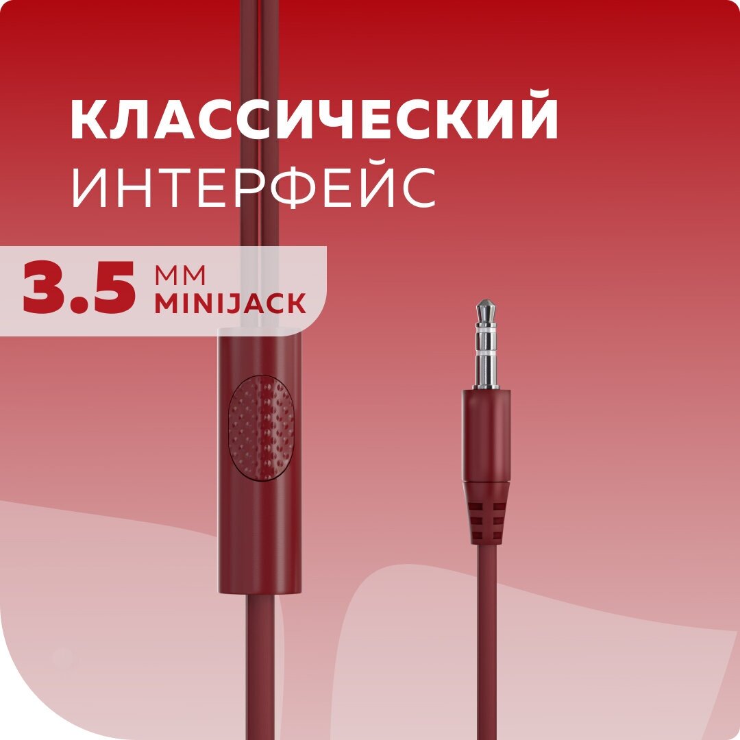 10 цен на Наушники вакуумные AUX разъём с микрофоном без регулятора громкости длина 1.1м More Choice G38 Red