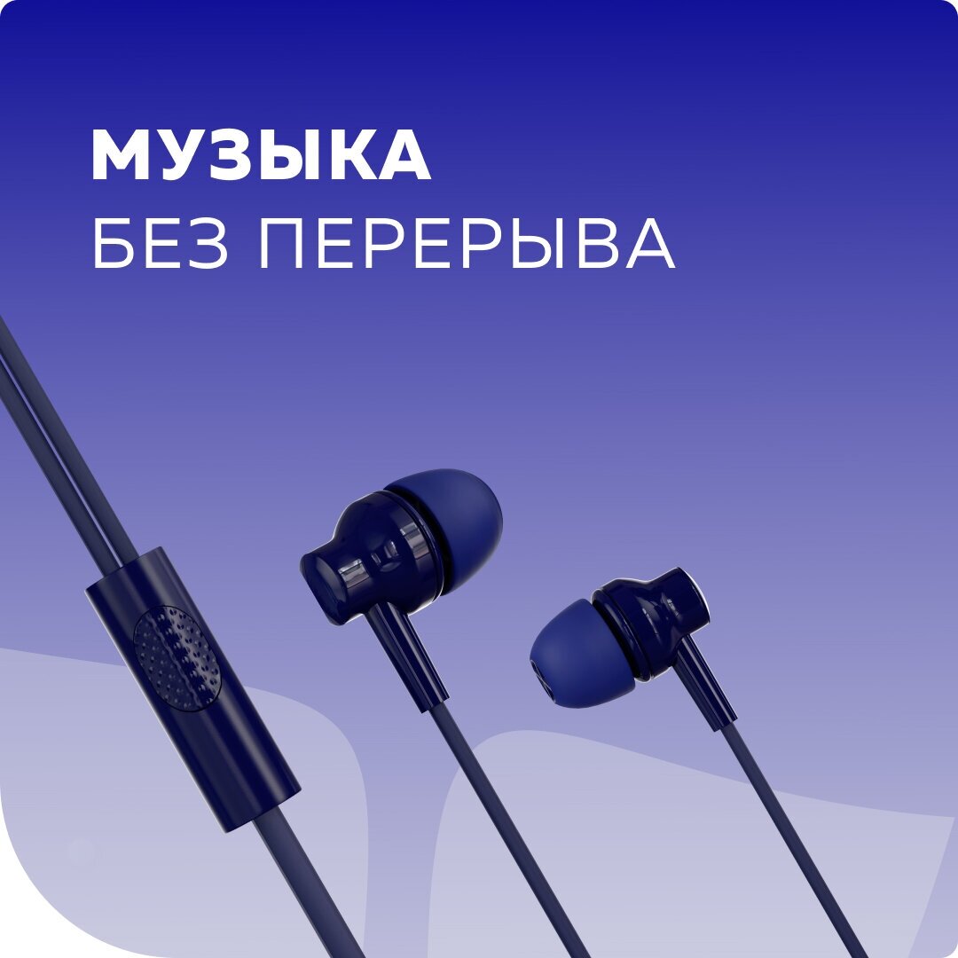 Наушники проводные вакуумные AUX разъём с микрофоном без регулятора громкости длина 1.1м More Choice G38 темно синие