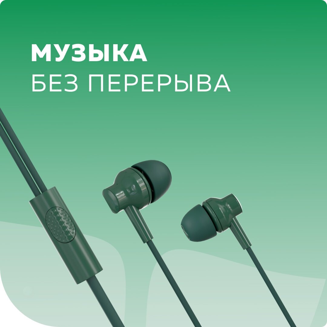 Наушники проводные вакуумные AUX разъём с микрофоном без регулятора громкости длина 1.1м More Choice G38 зеленые 232 ₽