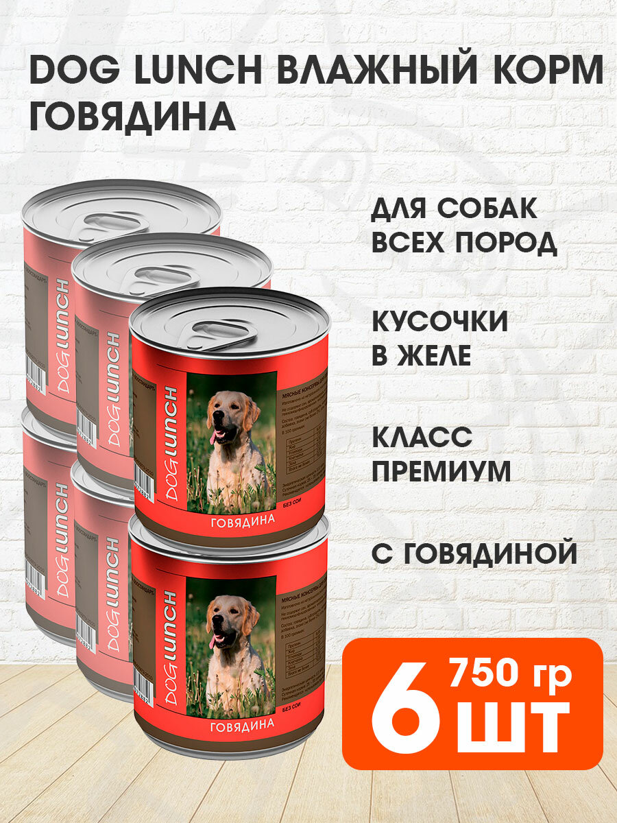 DOG LUNCH для взрослых собак с говядиной в желе банка 750 гр х 6 шт информация:
