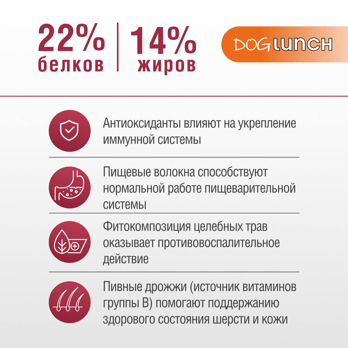 Dog Lunch Корм сухой для собак средних и крупных пород с Говядиной, 2 кг информация: