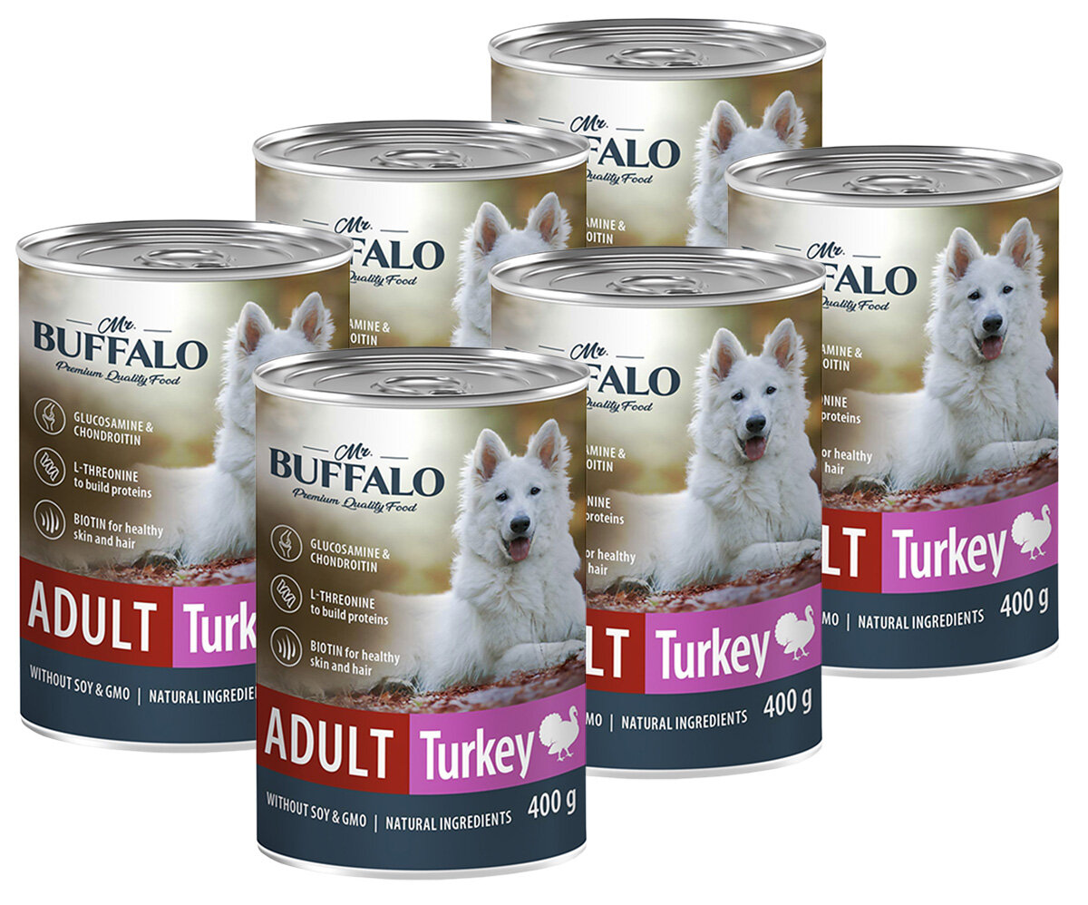 Баффало Mr.Buffalo Adult Dog 6 шт по 400г индейка консервы для собак