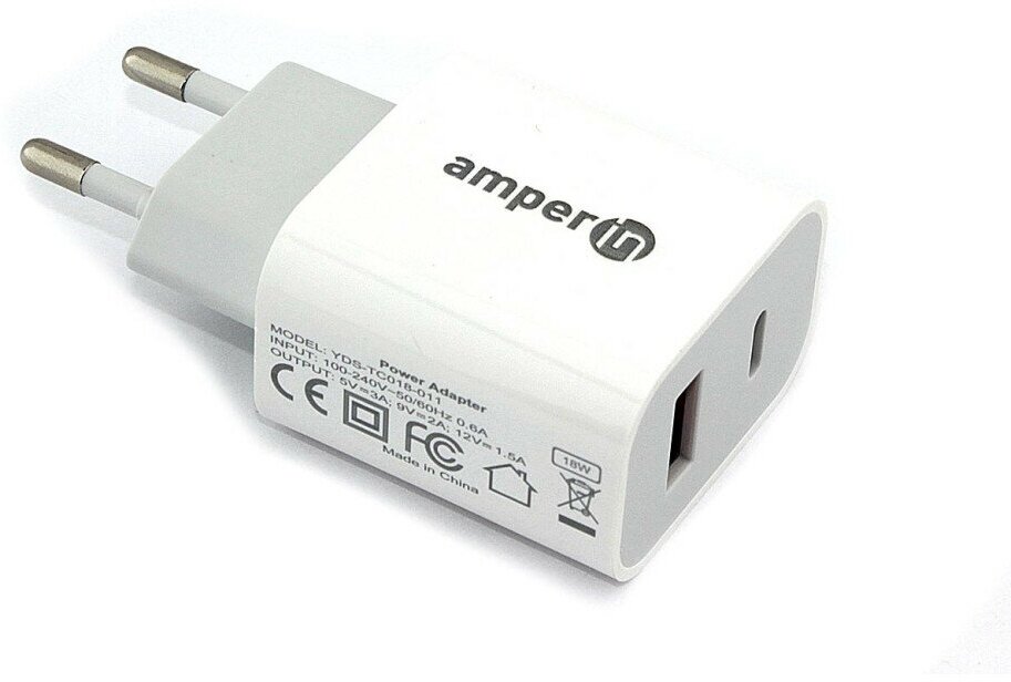 10 цен на Блок питания Quick Charge 2-Port QC 3.0 USB+Type-C USB 18W (YDS-TC018-011)