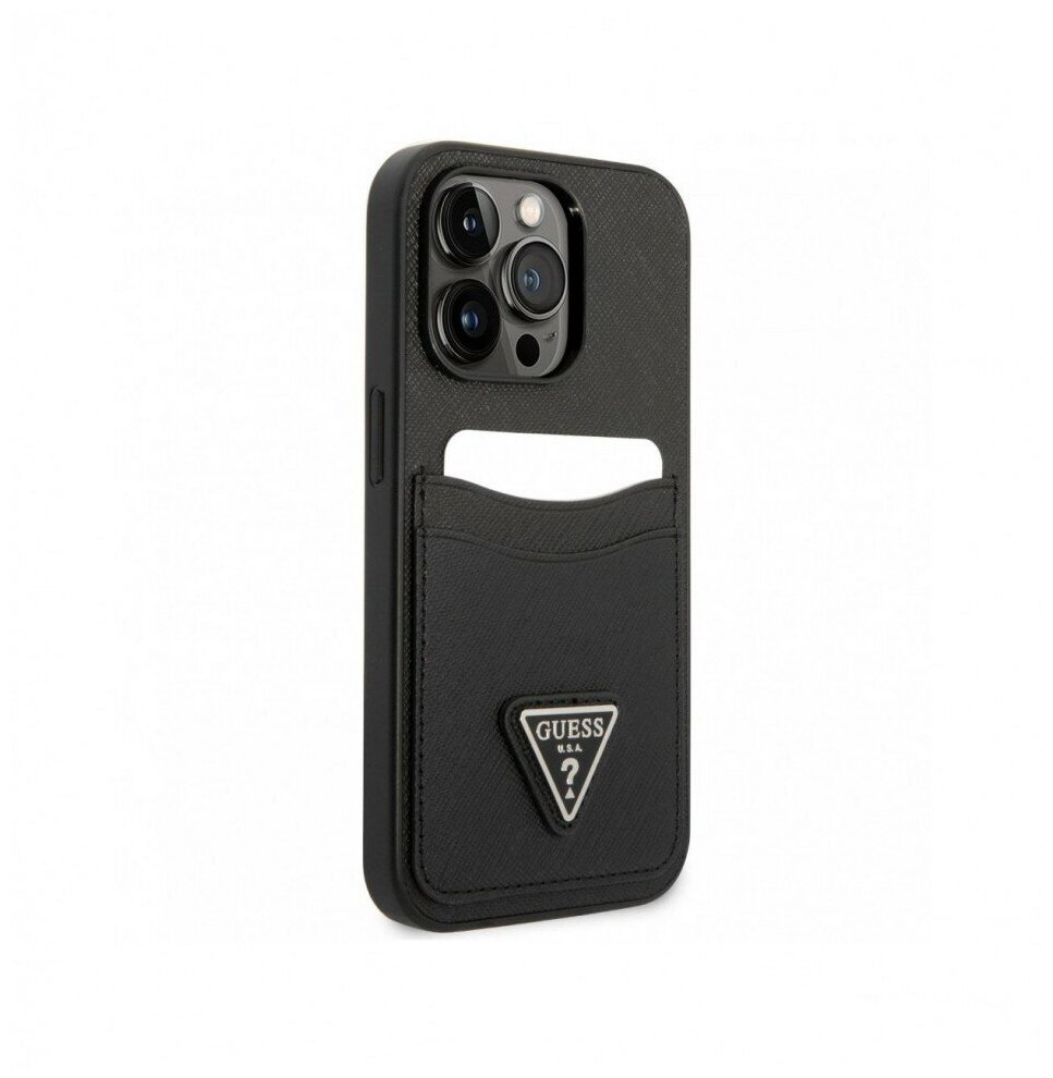 Guess Чехол Guess PU Saffiano Double cardslot Metal triangle logo Hard для iPhone 14 Pro Max, черный
