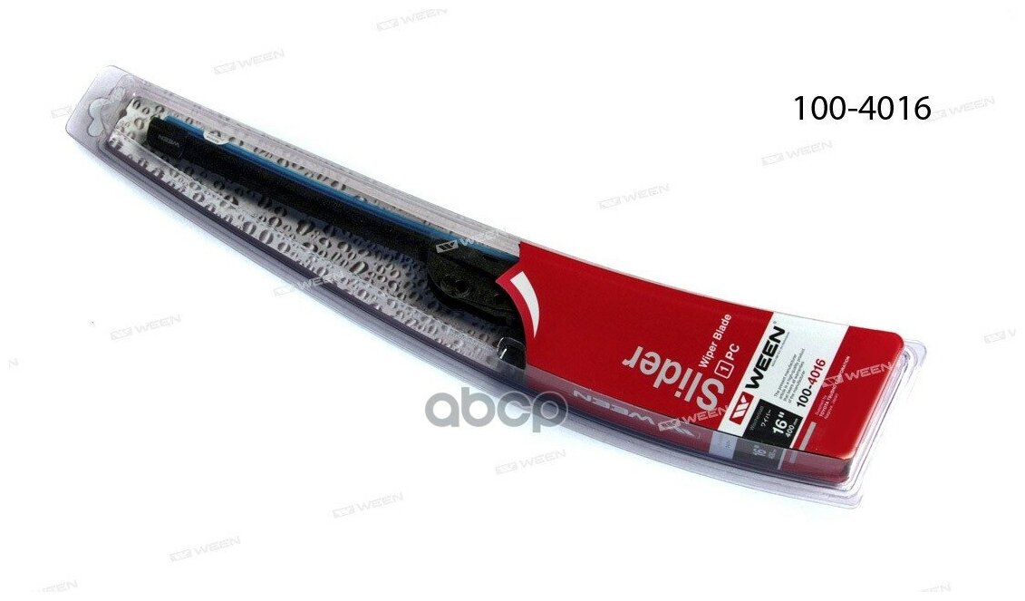 WEEN 100-4016 Стеклоочиститель бескаркасный 16/400mm адаптеры (крючок ,side pin,push button,pinch tab, top lock,b