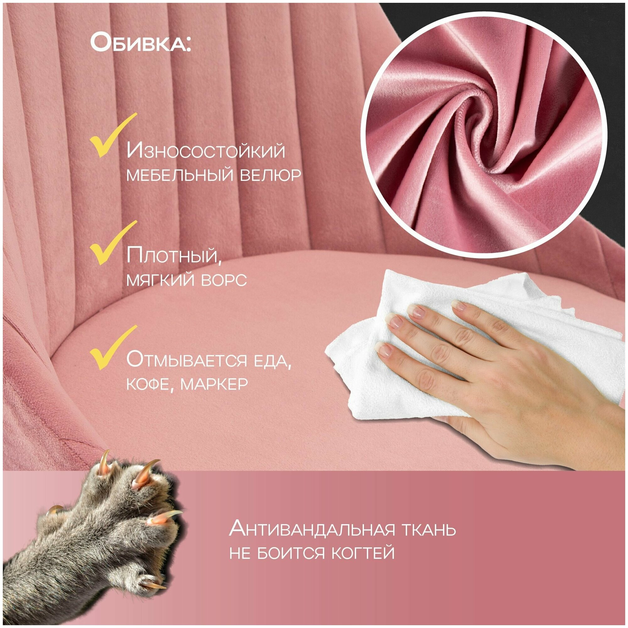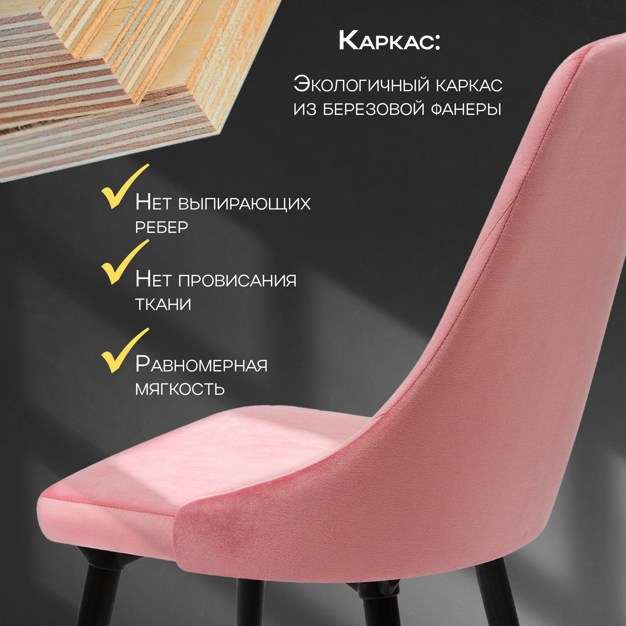 Отзывы на Мягкий стул кухонный со спинкой Лондон 1 шт, ножки деревянные, обеденный для кухни, гостиной, для дома, обивка вельвет розовый, АМИ мебель, Беларусь