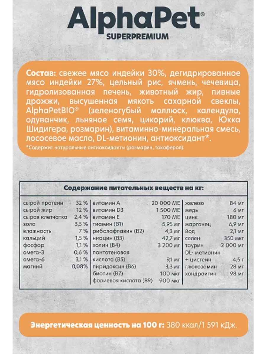 Сухой корм для кошек AlphaPet Superpremium с индейкой, 1,5 кг 2 879 ₽