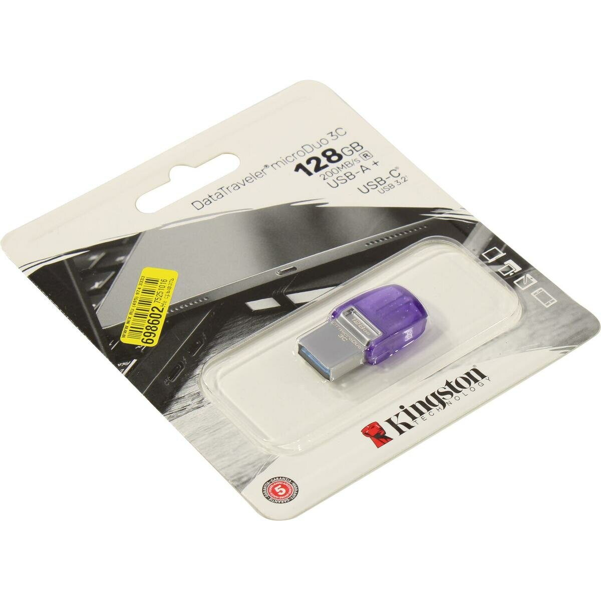 Флешка Kingston "Micro", 128 Гб, USB 3.2, Type-C и A (DTDUO3CG3/128GB) информация: