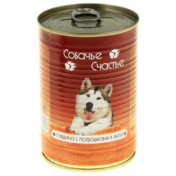 Консервированный корм для собак, Собачье Счастье, говядина с потрошками в желе, 410 г, 1 шт. информация: