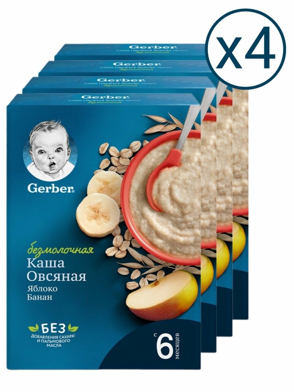 Каша сухая безмолочная Gerber овсяная банан-яблоко с 6 месяцев 180 г 4 шт информация: