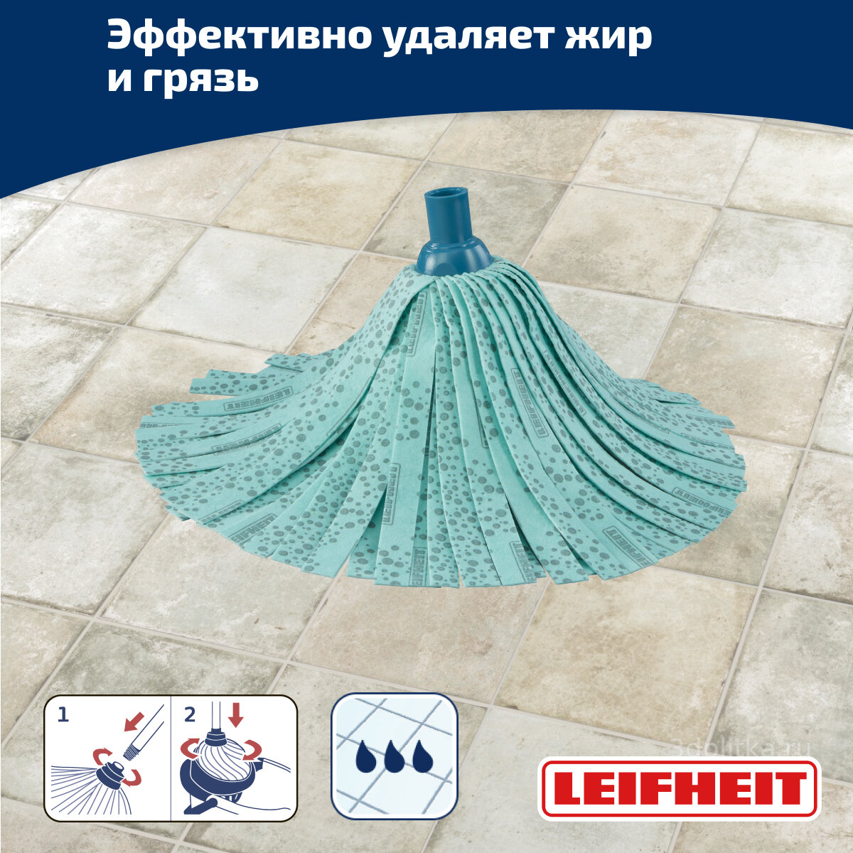 Насадка для швабры с точками для удаления грязи Leifheit Classic Mop, вискоза информация: