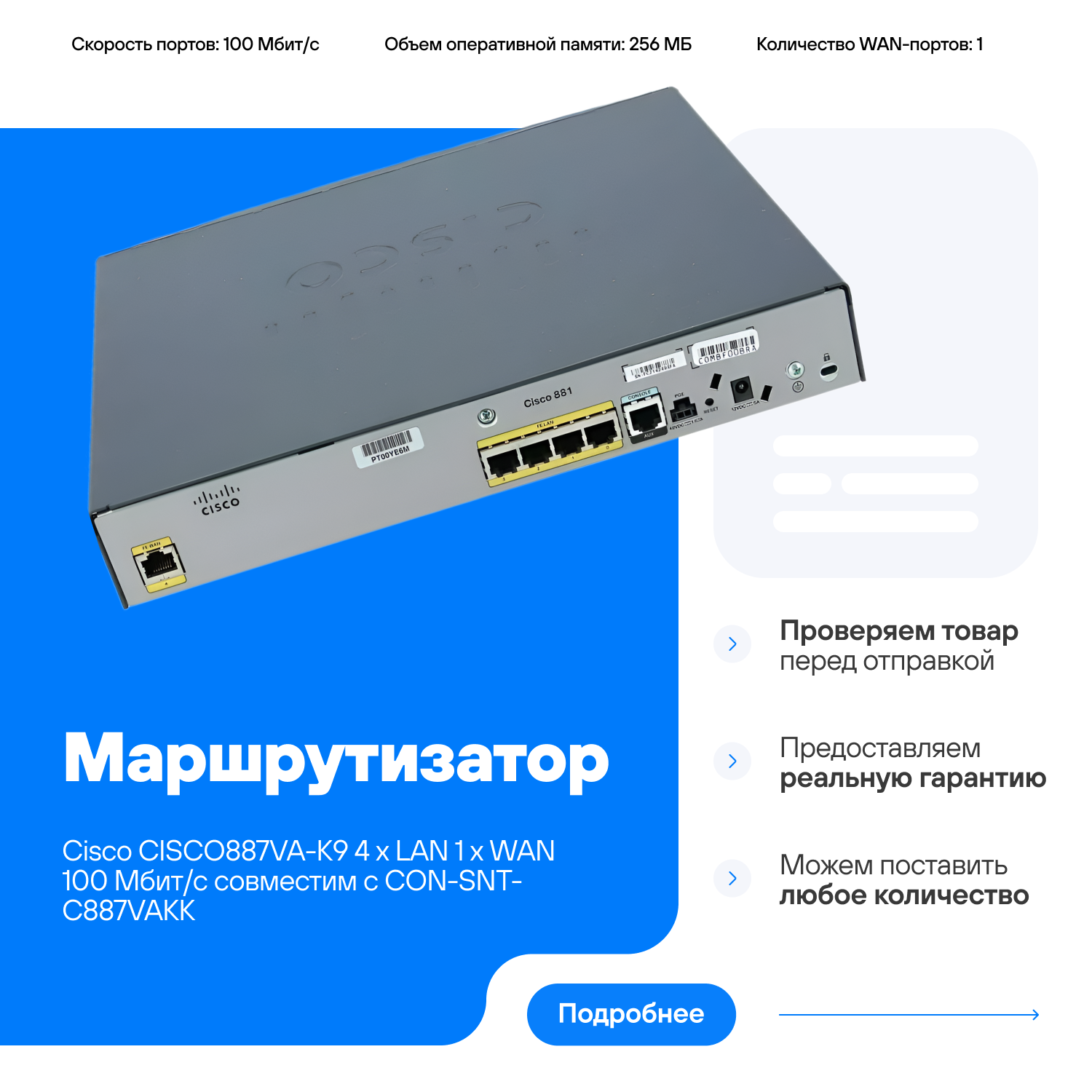 Отзывы на Маршрутизатор Cisco CISCO887VA-K9 4 х LAN 1 х WAN 100 Мбит/с PoE