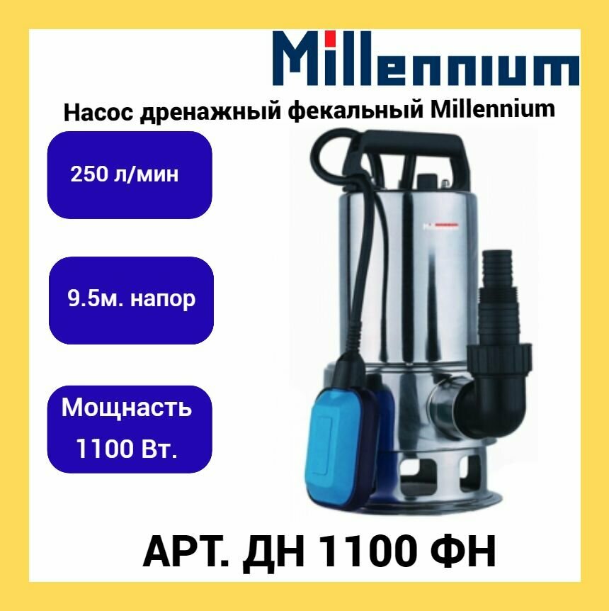Насос дренажный фекальный Millennium ДН 1100ФН (1100Вт/9.5м) 1 шт информация: