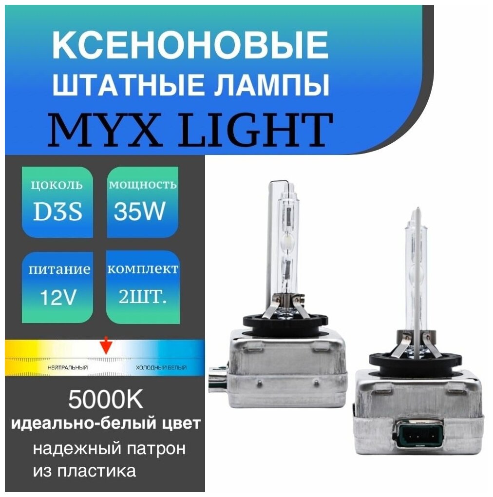 Ксеноновые лампы для автомобиля штатный ксенон цоколь D3S MYX Light,температура света 5000K, питание 12V, мощность 35W, пластиковый цоколь, комплект 2шт. информация: