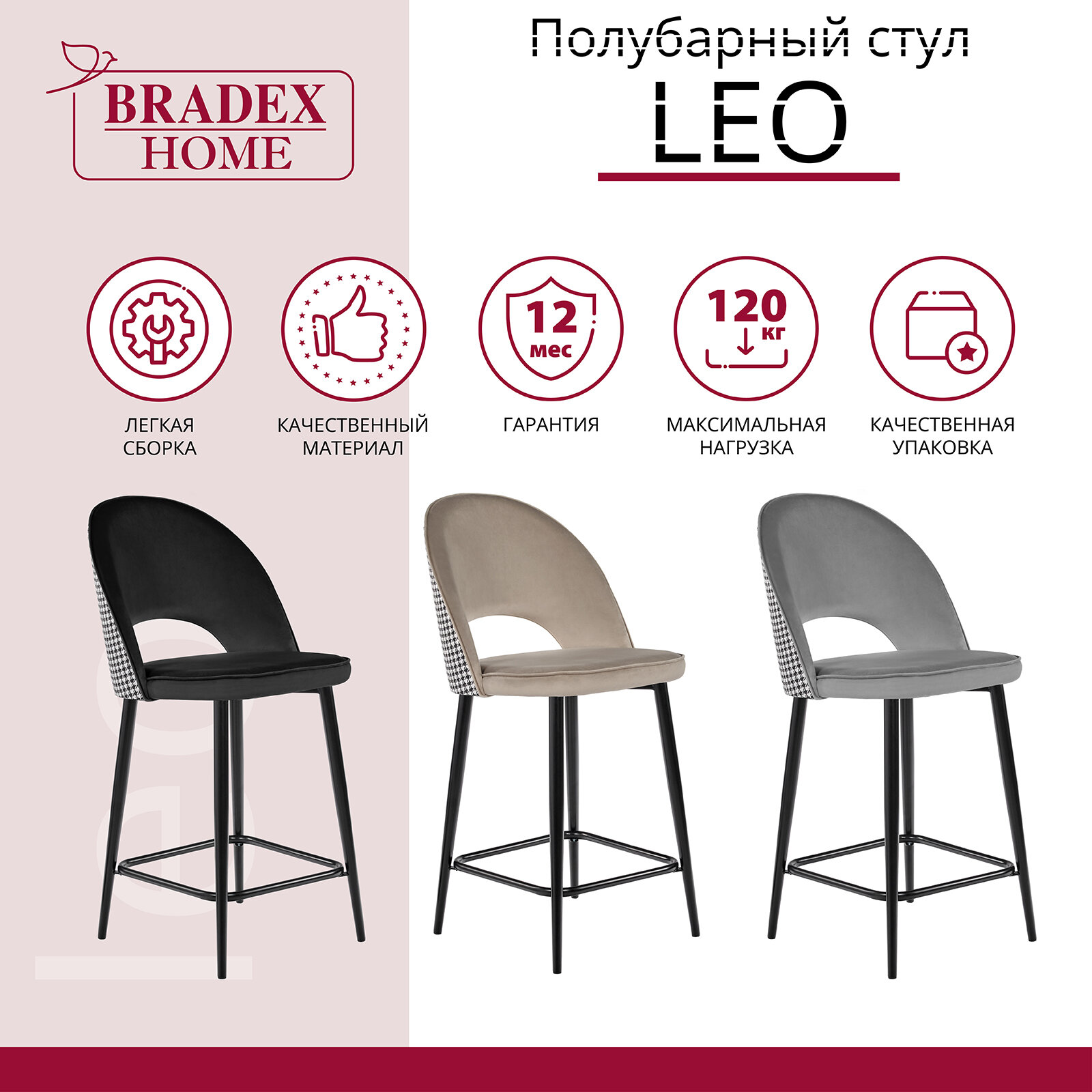 Стул полубарный Bradex Leo латте с жаккардом (RF 0268) 13 990 ₽