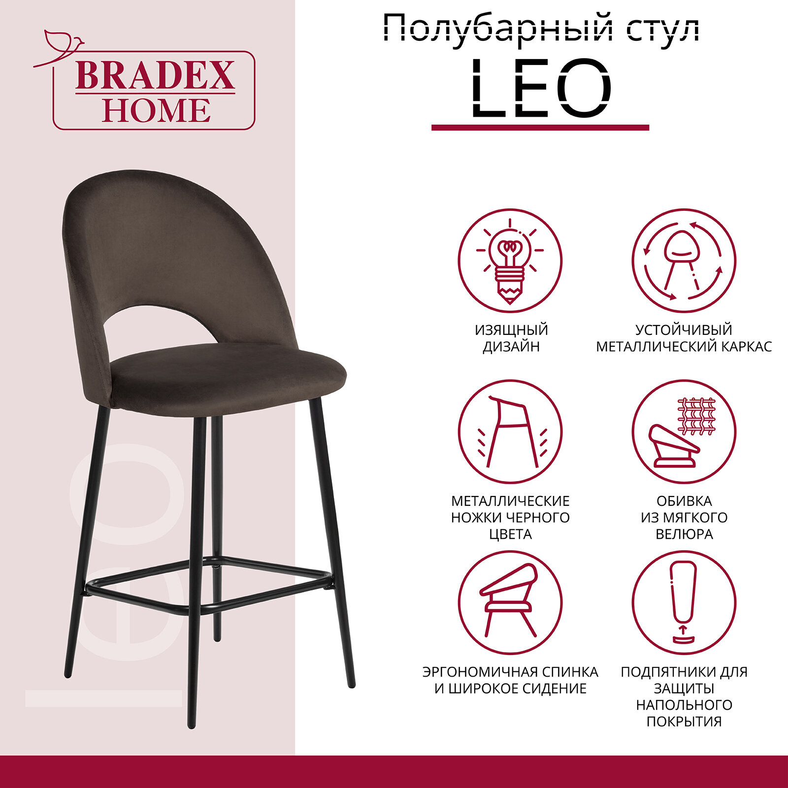Стул полубарный BRADEXHOME Leo Кофейный Размеры: Высота 990мм Глубина 490мм Ширина 560мм