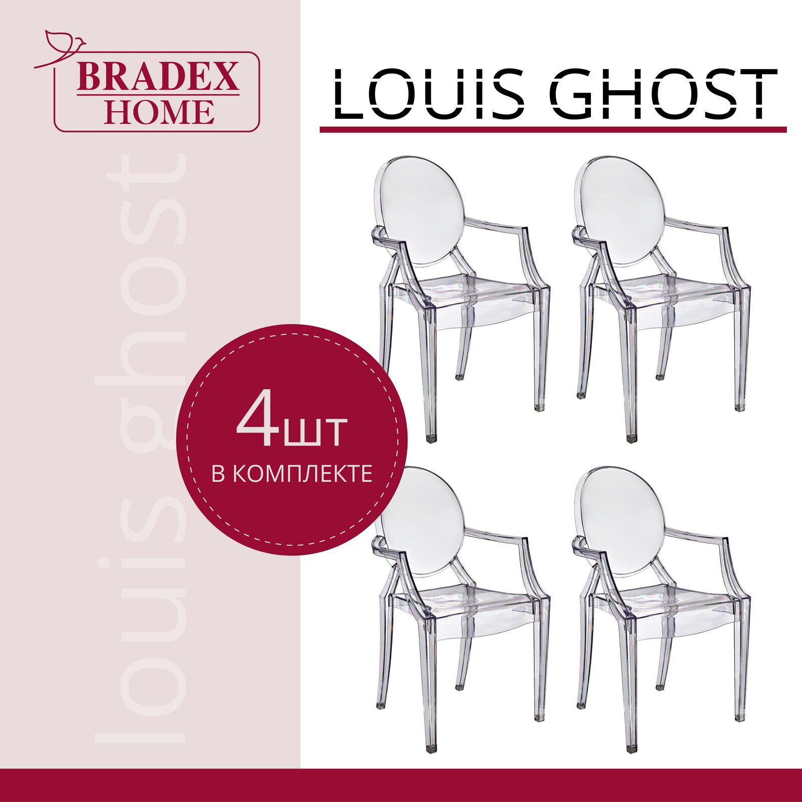 Комплект из 4-х стульев Louis Ghost прозрачный информация: