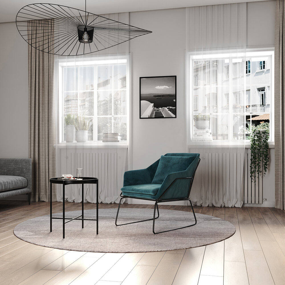Кресло с подушкой мягкое велюр ALEX темно-бирюзовое, для отдыха, на черных металлических ножках, офисное, интерьерное для дома в гостиную и на кухню информация: