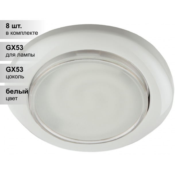 (8 шт.) Светильник точечный ЭРА для ламп с цоколем GX53, напряжение питания 220V, максимальная мощность лампы 13W, цвет белый KL35 WH-10 /1 информация: