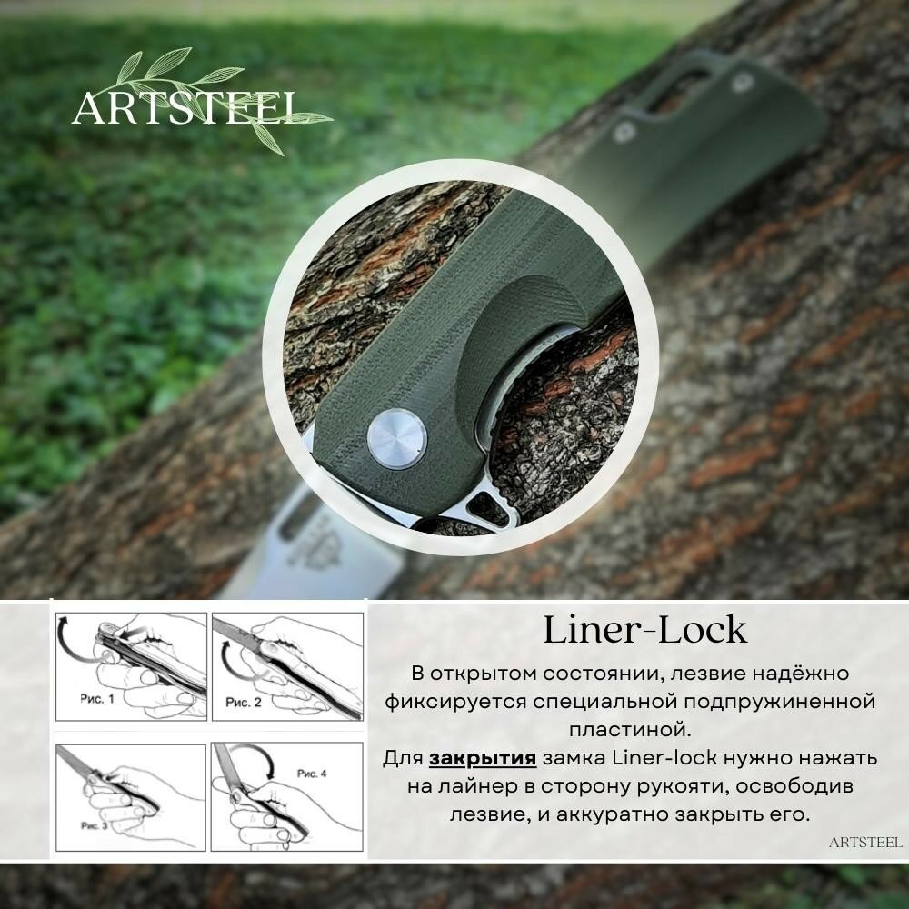 | Дополнительная информация | не относится к холодному оружию; марка стали: D2; твердость стали, HRC: 58-60; тип замка: Liner Lock; длина сложенного: 105 мм; чехол в комплекте: нет |