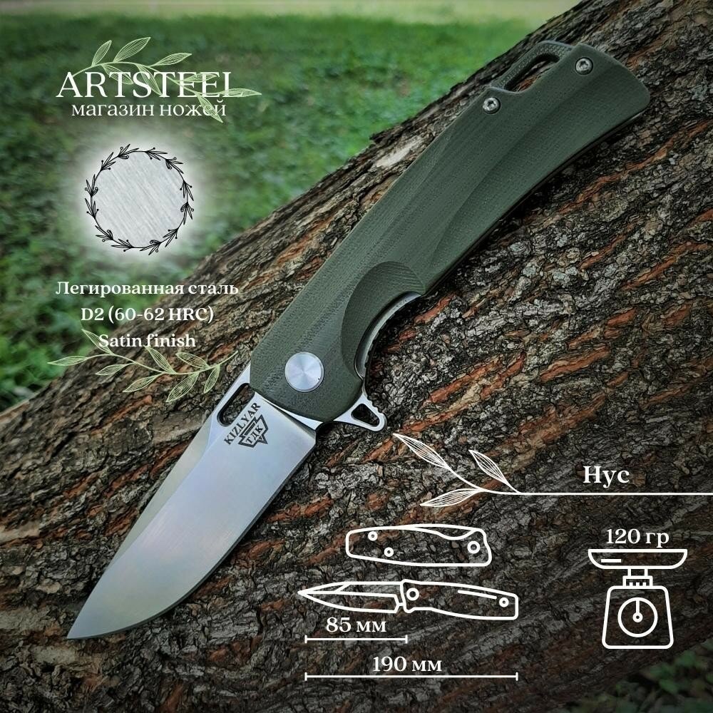 Складной нож Нус, сталь D2, рукоять G10, хаки информация: