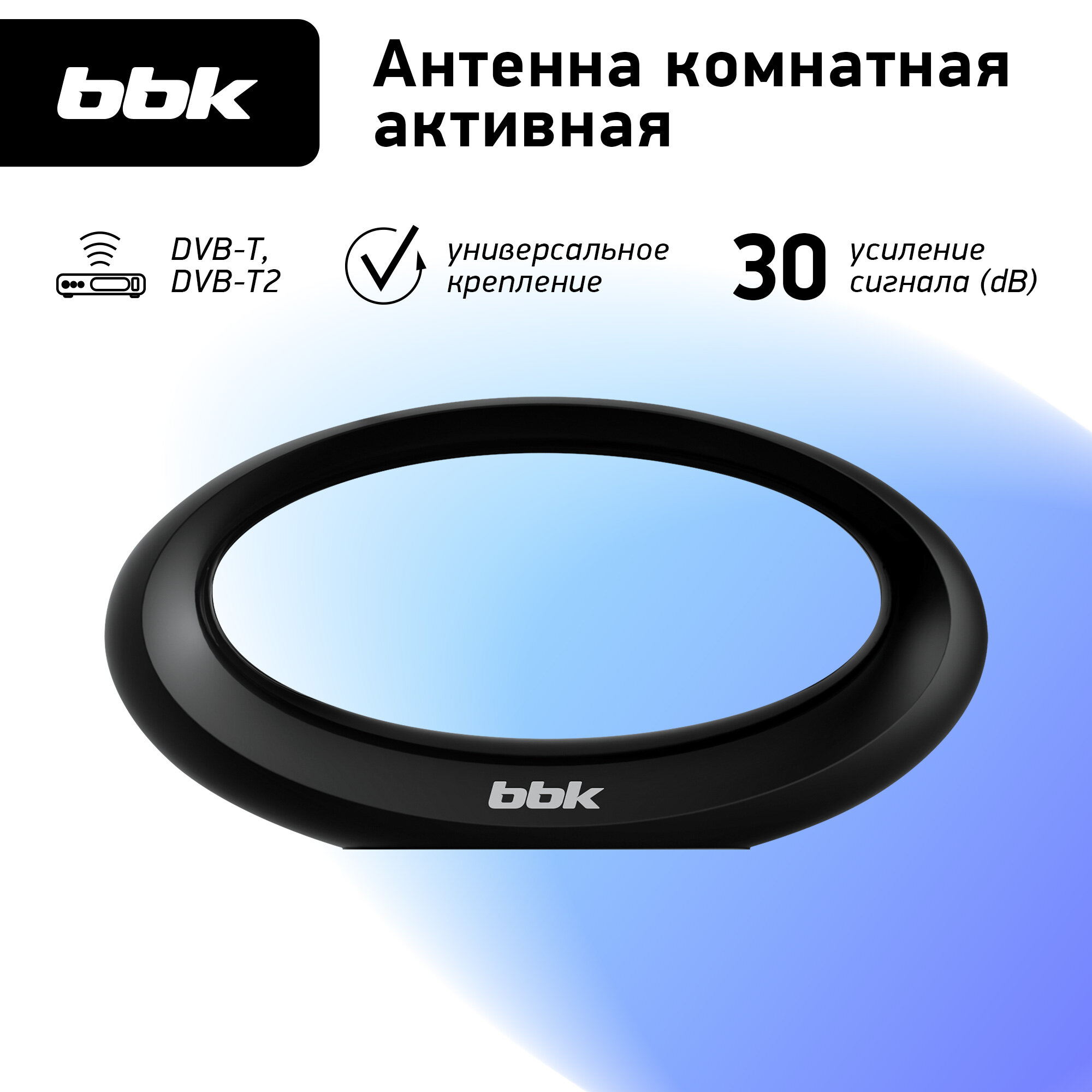 Антенна цифровая комнатная активная BBK DA21 черный, DVB-T2, коэффициент усиления 30 dB информация:
