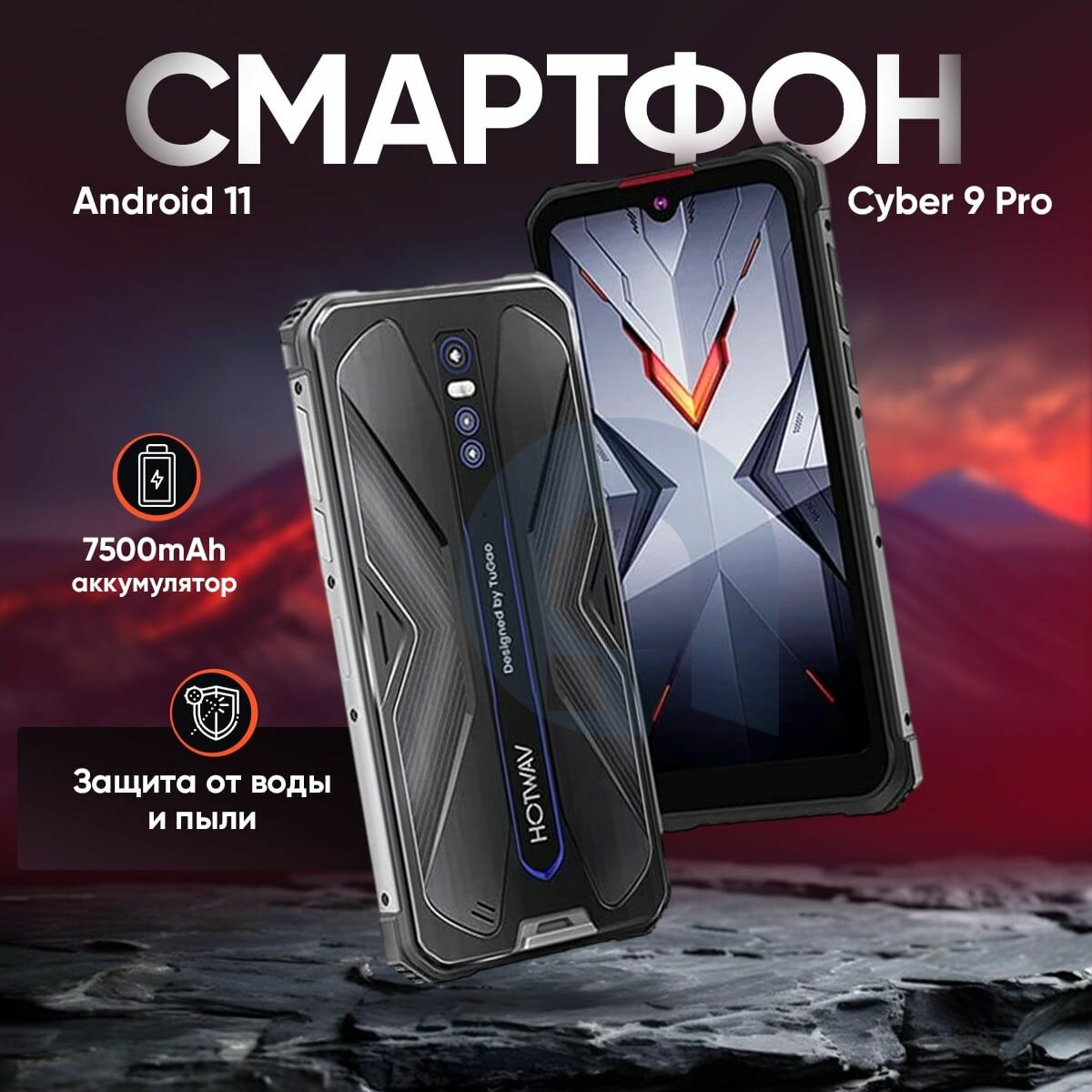 Противоударный смартфон HOTWAV Cyber 9 Pro 8/128 ГБ 7500мАч + Стекло, Streamer Blue 17 190 ₽