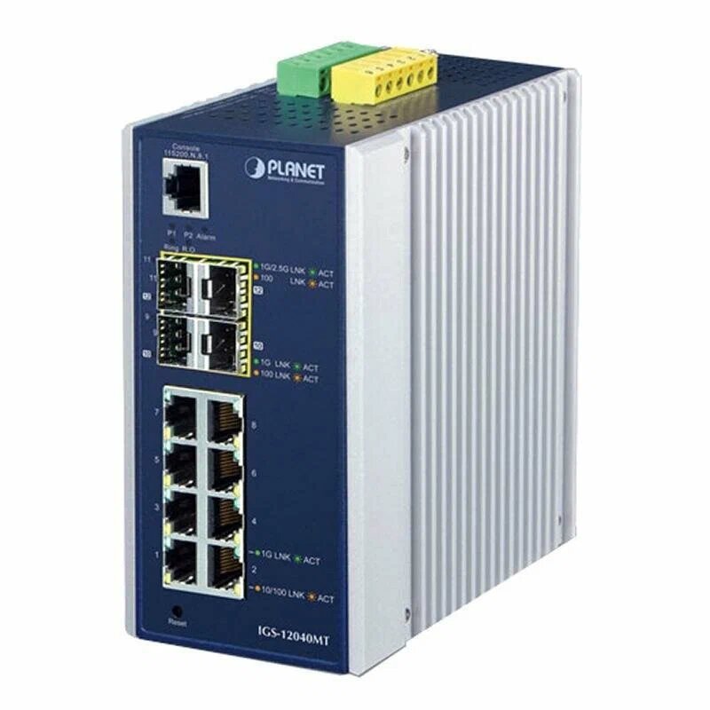 Planet IGS-12040MT индустриальный управляемый коммутатор/ IP30 Industrial 8* 1000TP + 4* 100/1000F SFP Full Managed Ethernet Switch (-40 to 75 degree C, 2*DI, 2*DO, 12V-72VDC IN), ERPS Ring, 1588 57 040 ₽