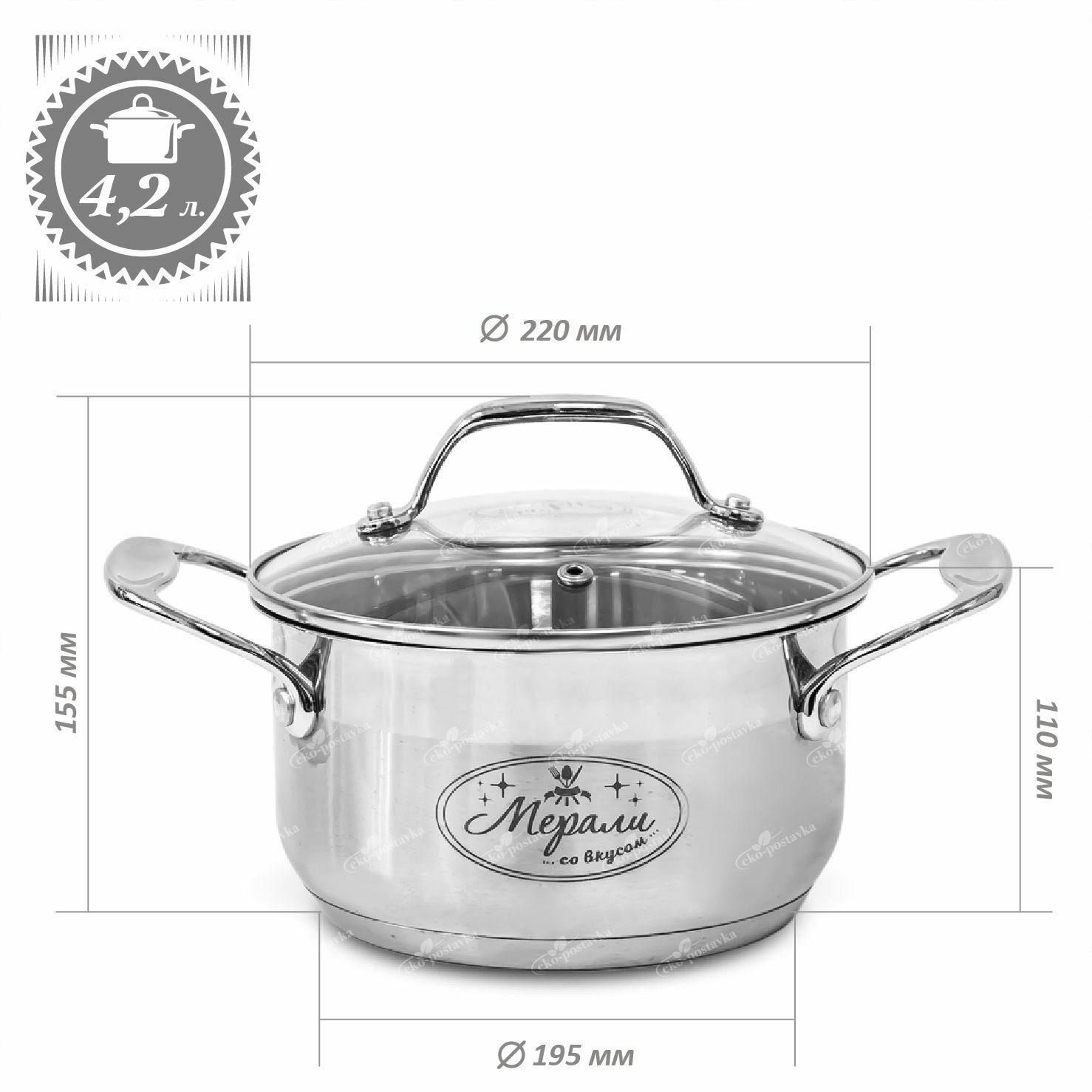 Кастрюля с крышкой Мерали из нержавеющей стали для газовых электрических и индукционных плит 4,2 л информация: