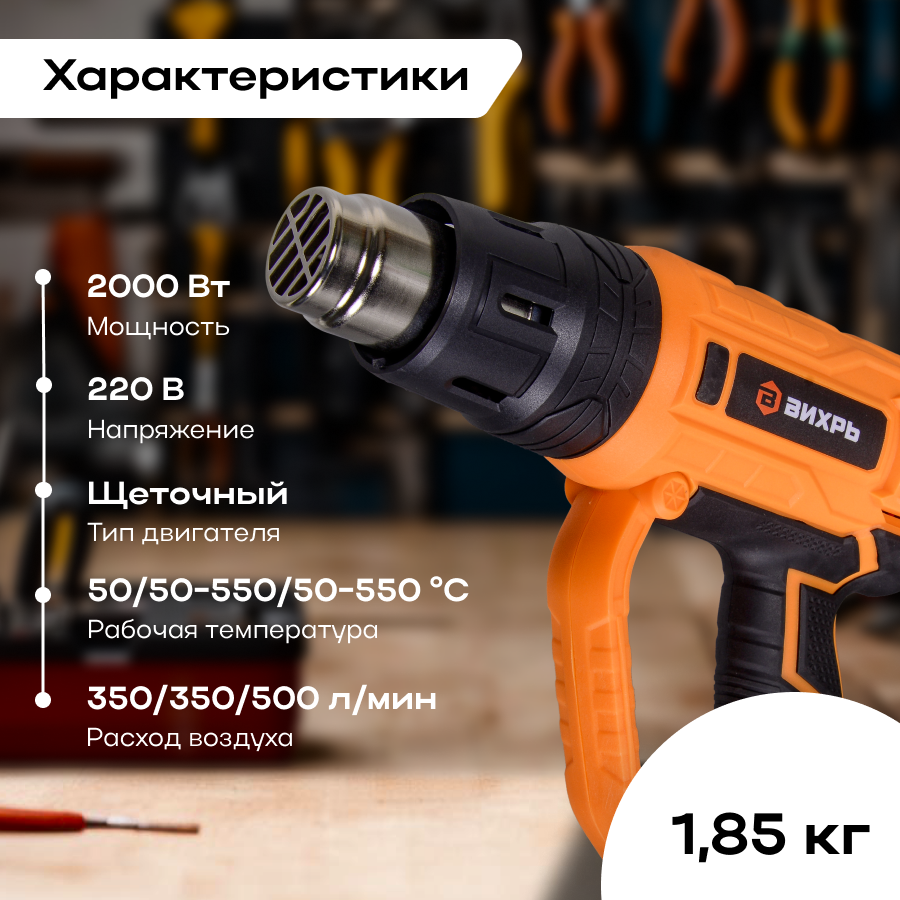 Термопистолет Вихрь ТП-2000Р, щеточный двигатель, 2000 Вт