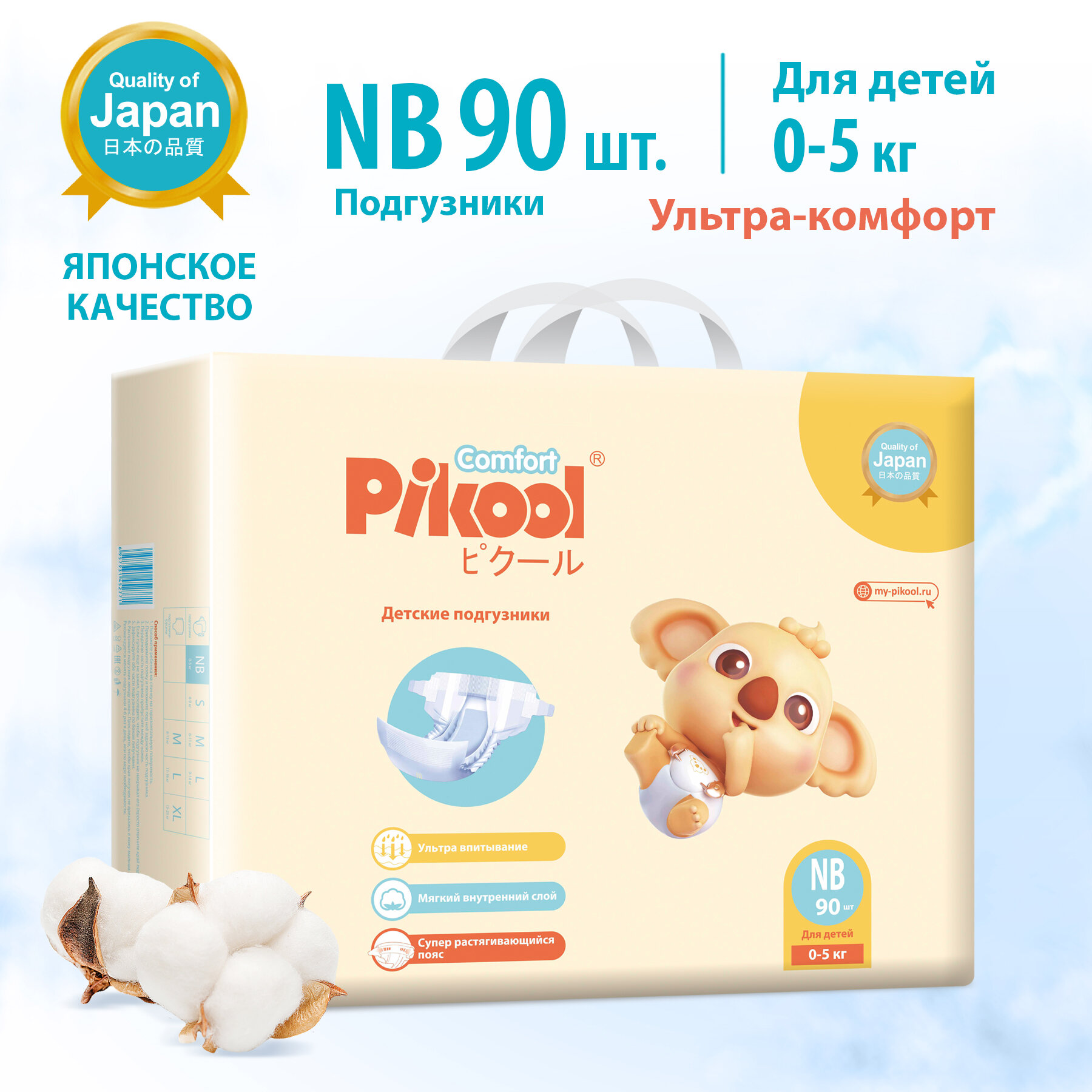 Подгузники Pikool Comfort, размер NB (0-5кг), 90 шт информация: