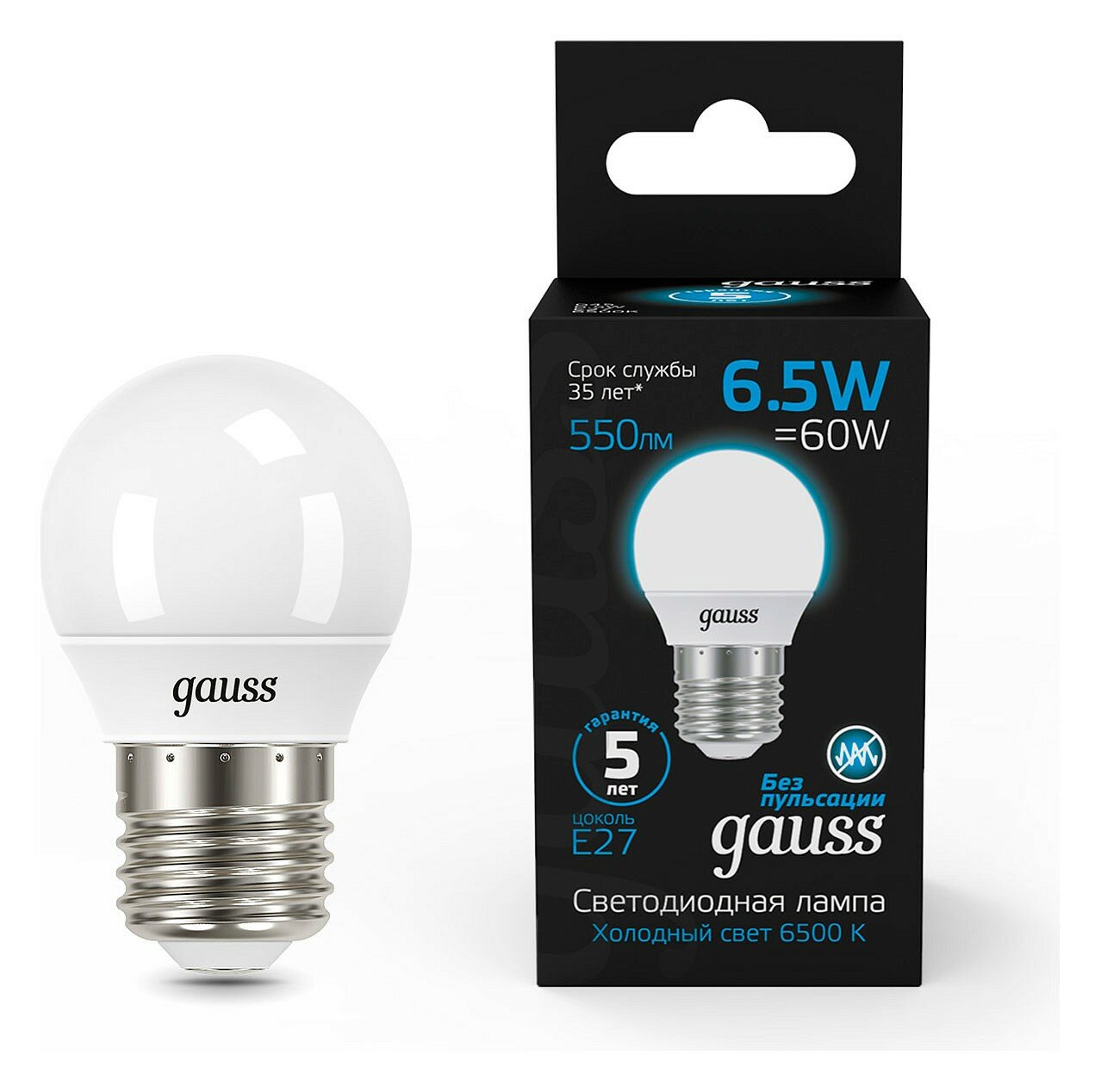10 цен на Gauss Лампа Шар 6.5W 550lm 6500K E27 LED 1/10/100 105102307