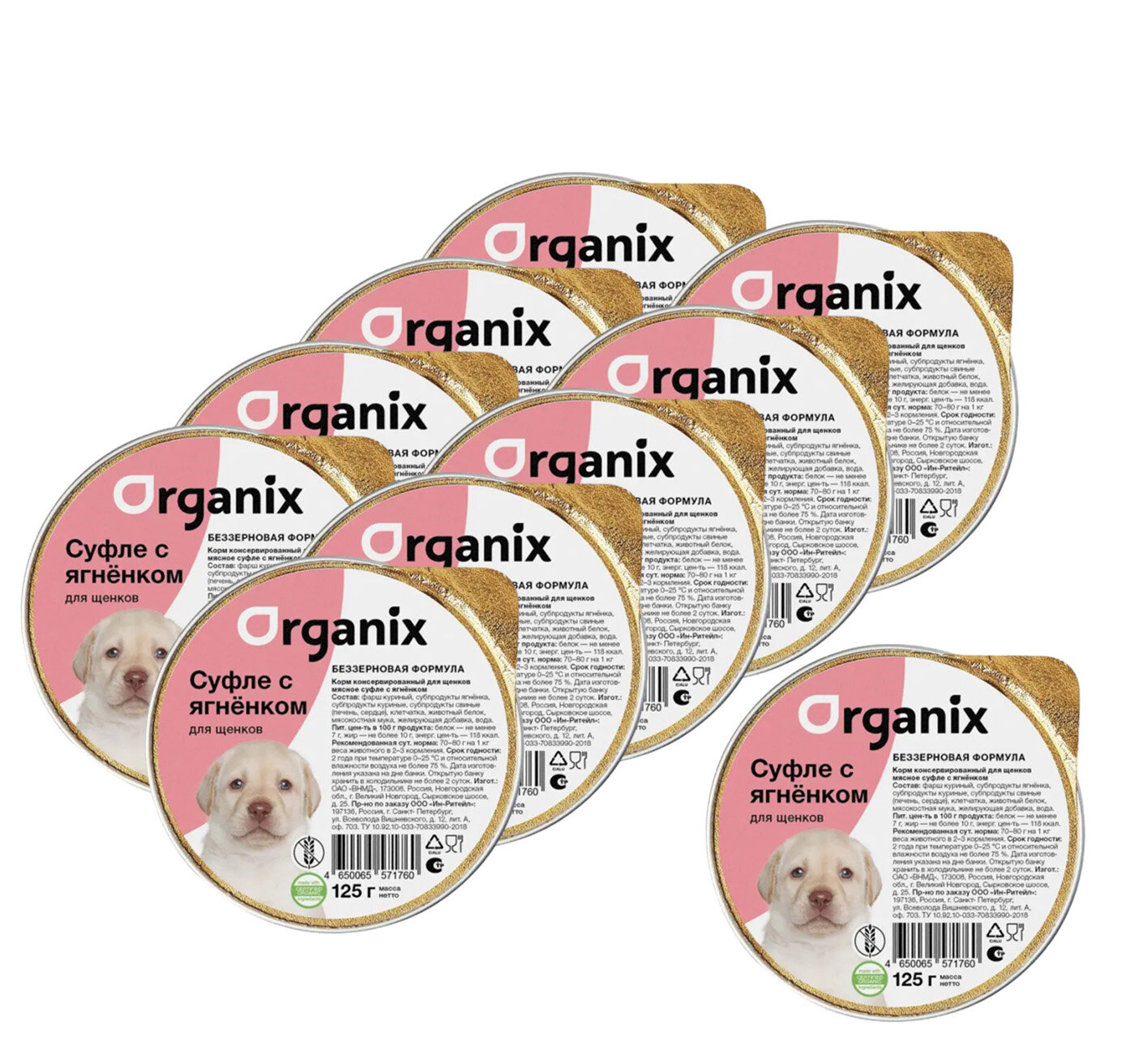Organix консервы Мясное суфле для щенков с ягненком 11вн42 0,125 кг 19654 (10 шт)