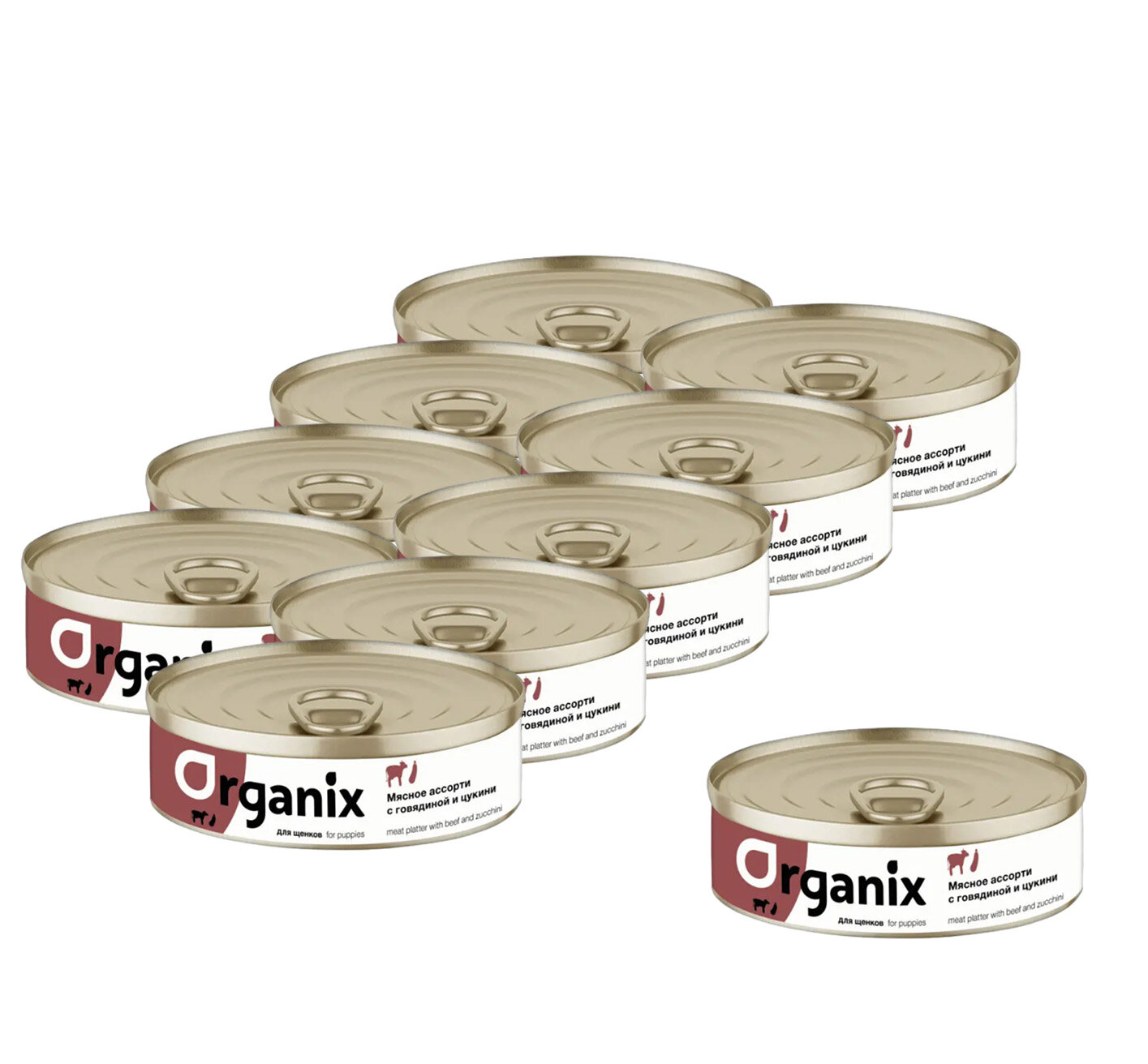 Консервы ORGANIX мясное ассорти для щенков с говядиной и цукини (100 гр х 24 шт)
