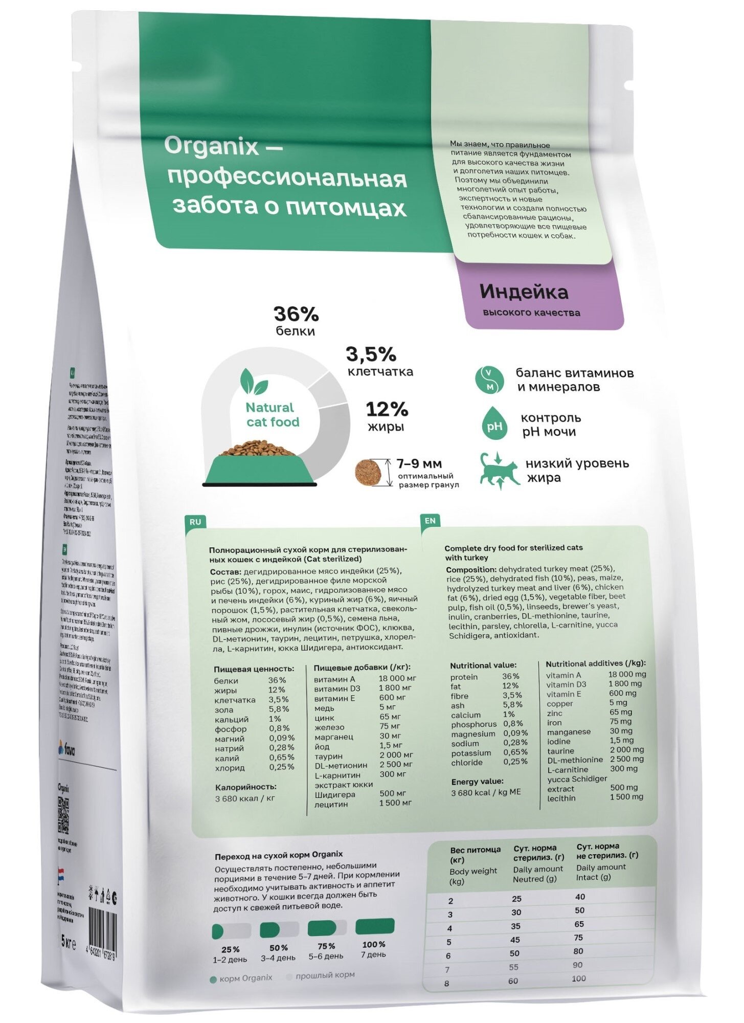 Organix Сухой корм для стерилизованных кошек с индейкой 5 кг информация:
