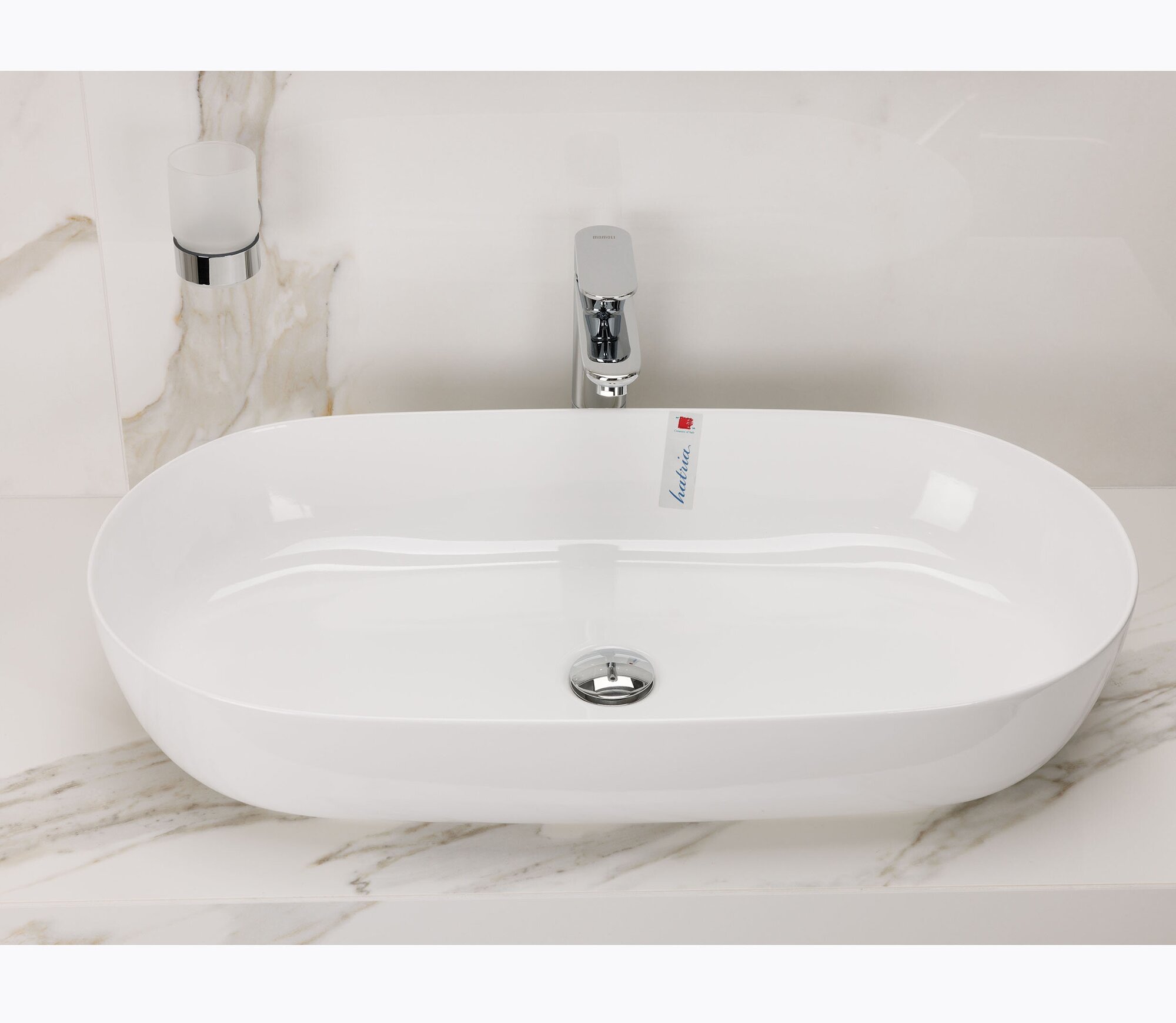 Раковина накладная HATRIA HAPPY HOUR Y8AL01, овальная, белая, 75х38 см, белая глянцевая информация: