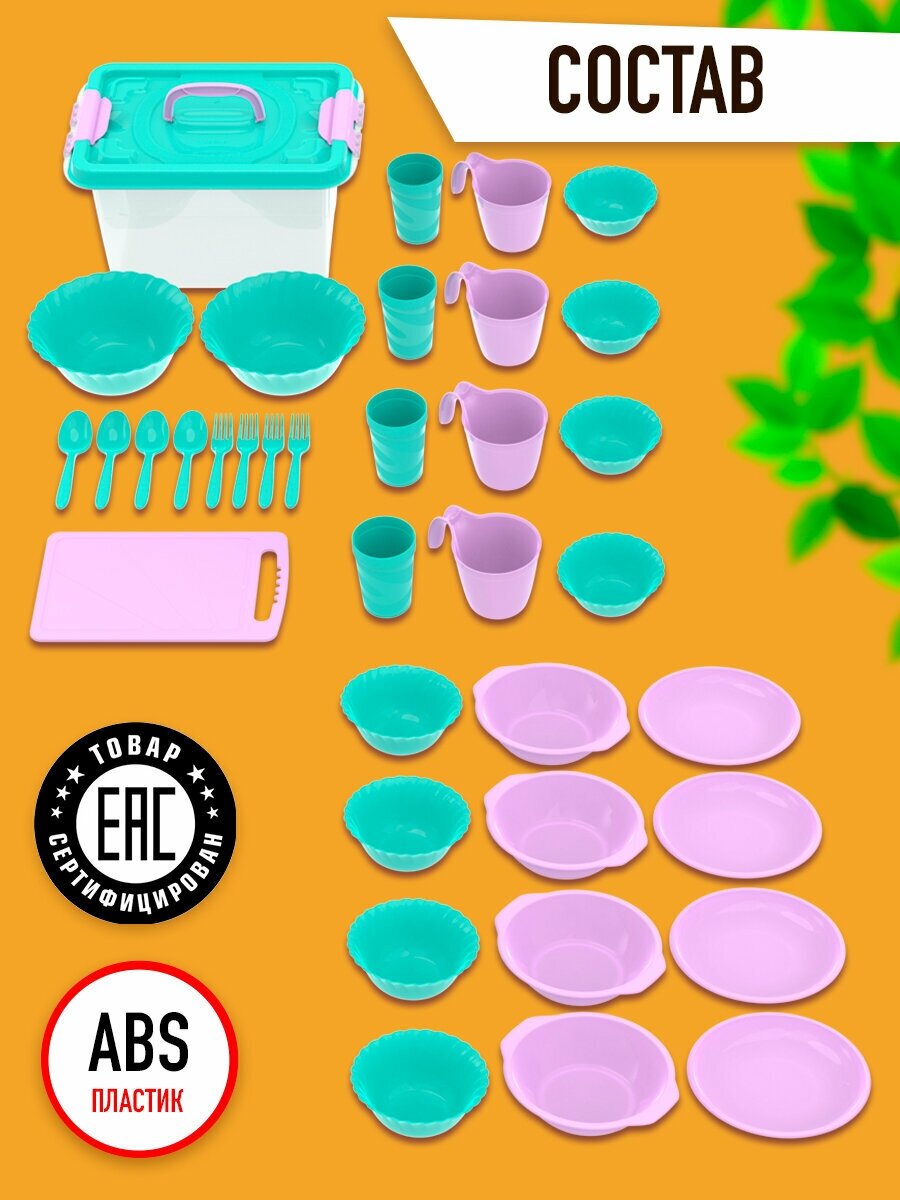 Набор для пикника, посуда для кемпинга №21 «Повод есть» (4 персоны, 42 предмета) / АП 780