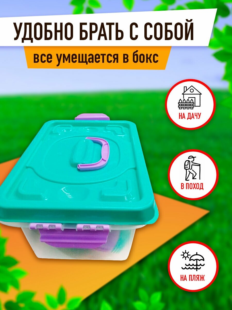 Набор походной пластиковой посуды в контейнере с ручкой для пикника, на шашлыки, для туризма, барбекю для 4 человек 42 предмета №21 АП780 Повод есть