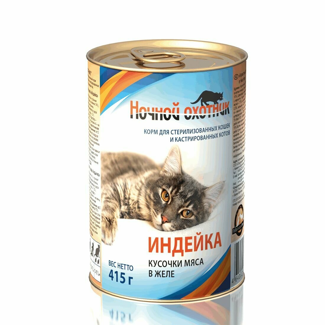 Ночной Охотник Консервы для стерилизованных кошек и кастрированных котов Индейка в желе, 415 г