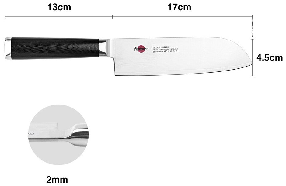 2571 FISSMAN Нож Сантоку 17см Kensei Musashi (сталь DAMASCUS) информация: