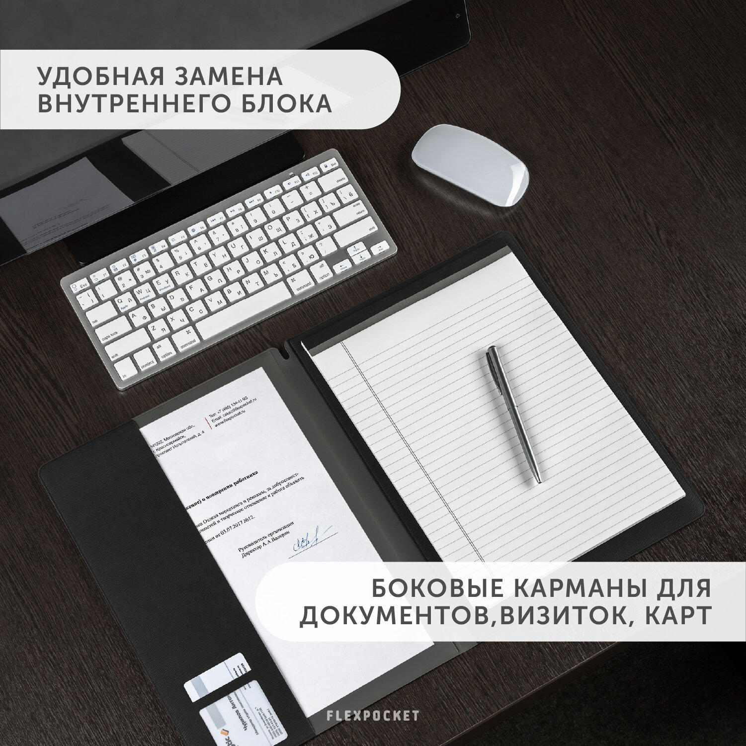 Блокнот-планшет A4 Flexpocket в обложке из экокожи Saffiano, в подарочной упаковке, цвет черный информация: