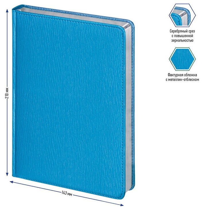 Комплект 6 шт, Ежедневник недатированный, А5, 160л., кожзам, Berlingo "Starlight", серебр. срез, голубой 5 936 ₽