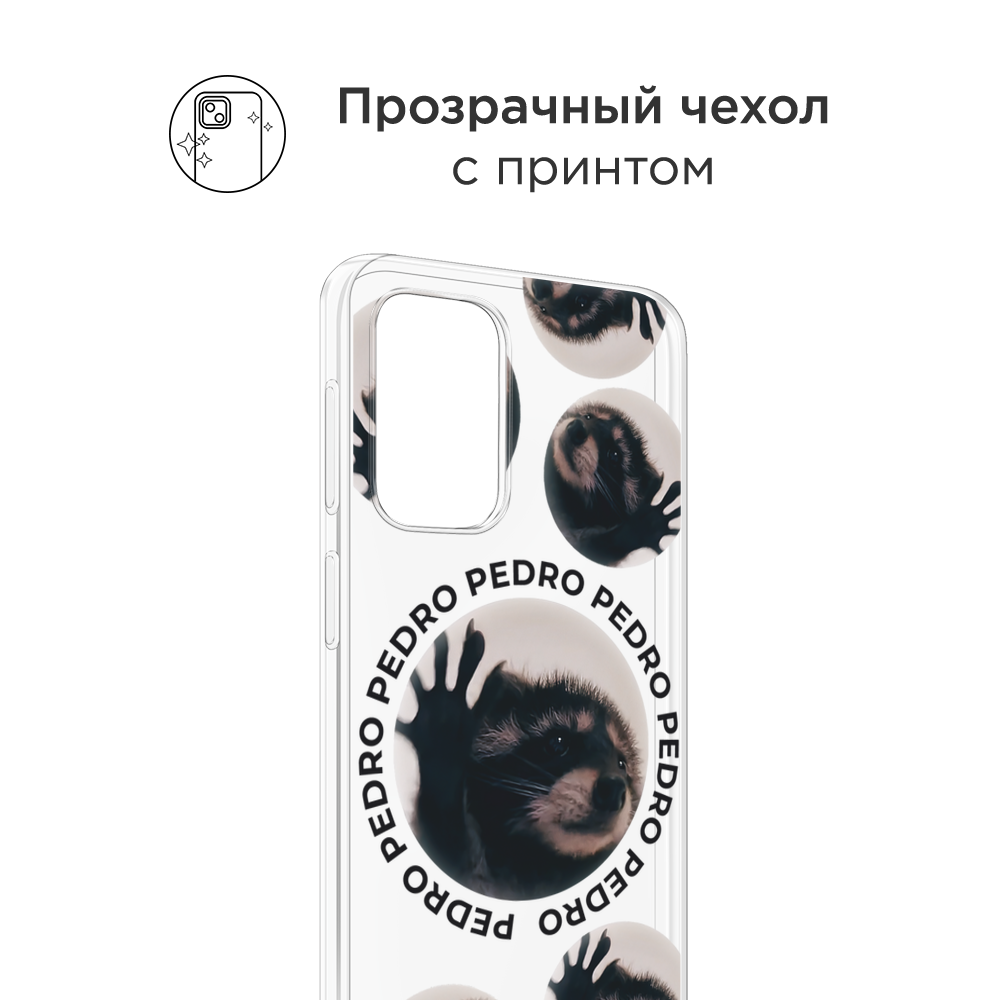 Чехол на Samsung Galaxy A51 / Самсунг Гэлакси А51 с принтом Pedro енот, прозрачный информация: