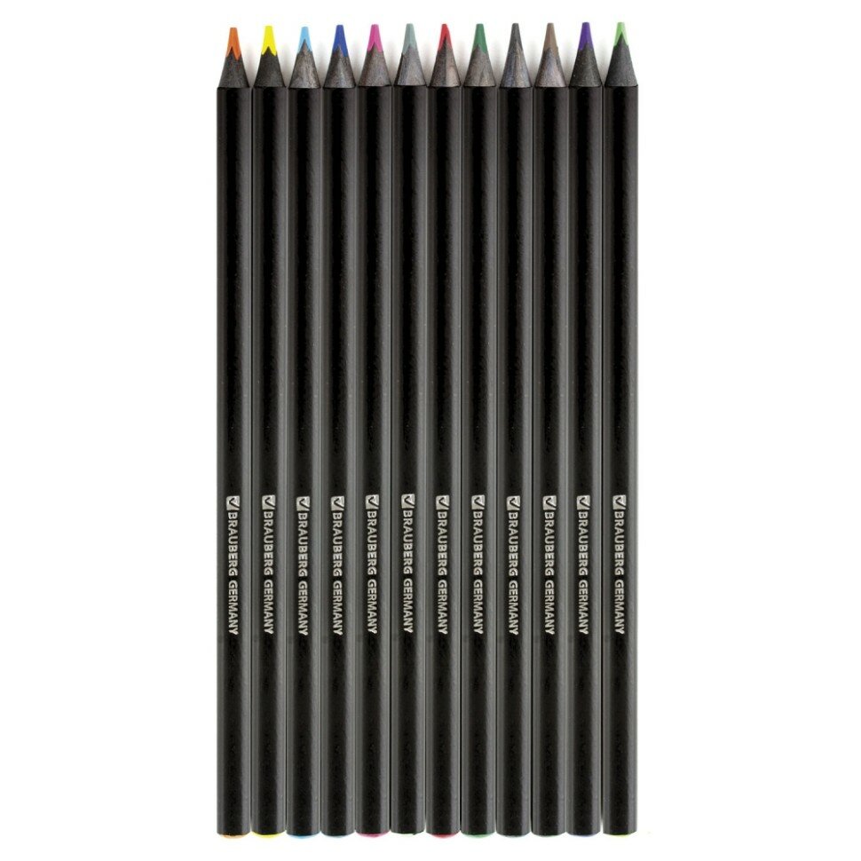 Карандаши цветные BRAUBERG Black Jack, 12 цв., трехгранные, черное дерево, заточенные, картонная упаковка, 180834