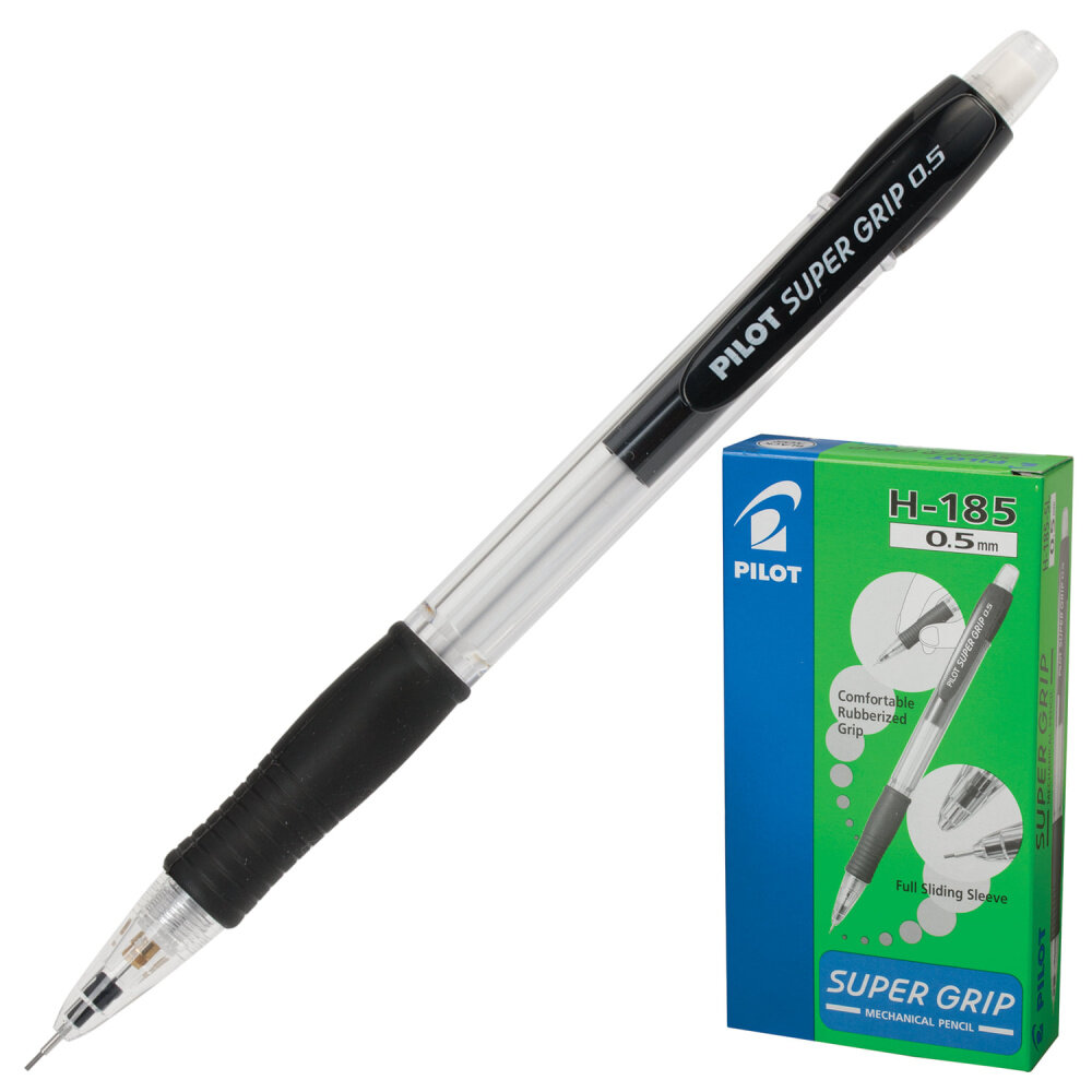 Отзывы на Упаковка 12 шт. Карандаш механический 0,5 мм, PILOT H-185 "Super Grip", ластик, резиновый грип, корпус черный, H-185-SL, Н-185