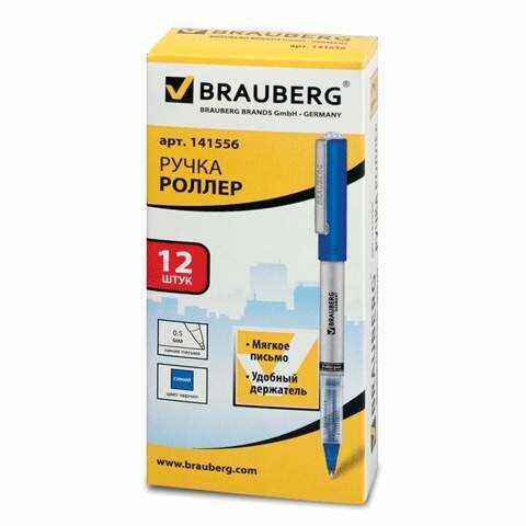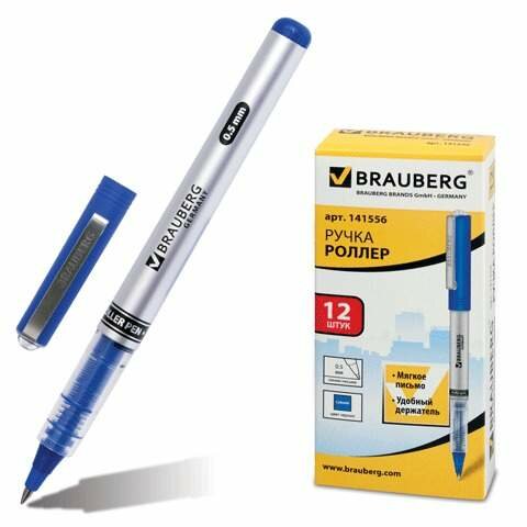 Ручка-роллер BRAUBERG "Flagman", синяя, корпус серебристый, хромированные детали, узел 0,5 мм, линия письма 0,3 мм, 141556 (цена за 1 ед.товара)