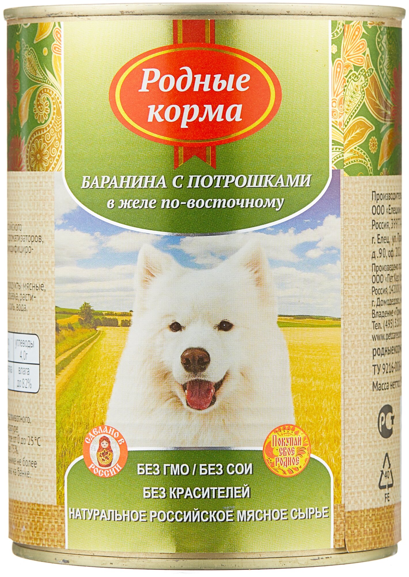 Родные корма Консервы для собак баранина с потрошками в желе по восточному 0.41 кг