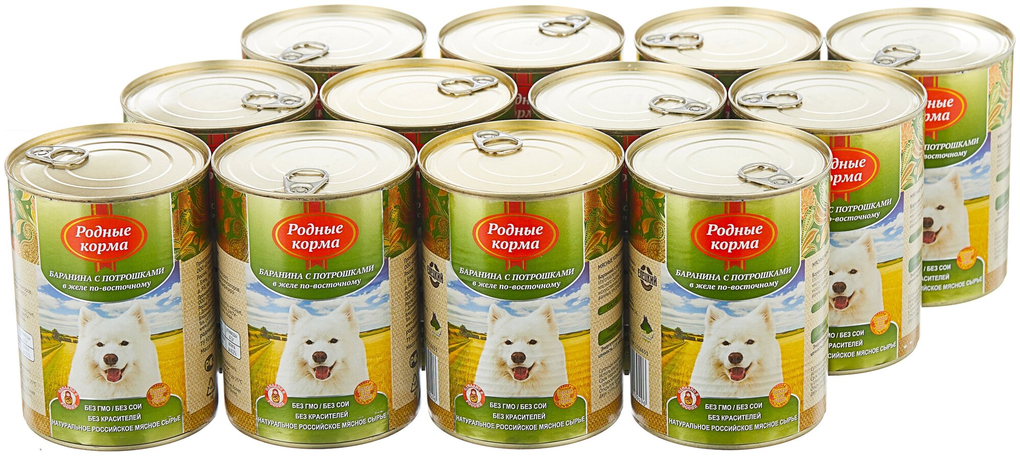Родные корма консервы для собак Баранина с Потрошками в Желе-По Восточному 12х970г