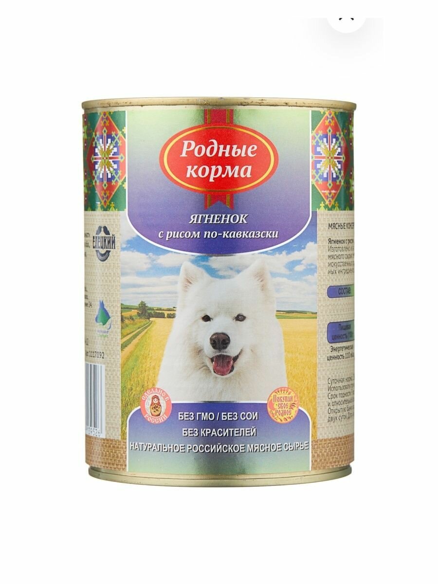 Корм влажный для собак Родные корма Ягненок по-Кавказски консервы 970 г информация: