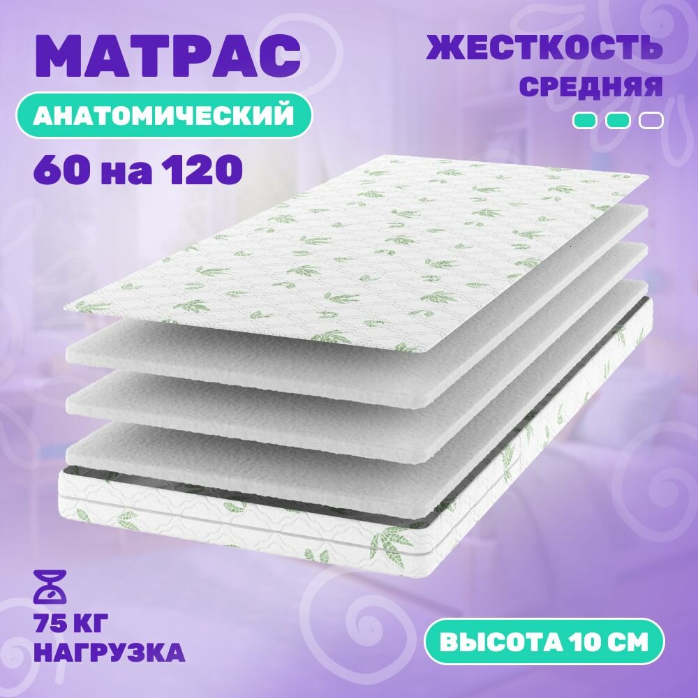 10 цен на Матрас 120 на 60 см на 10 см - беспружинный - средняя жесткость - Капризун